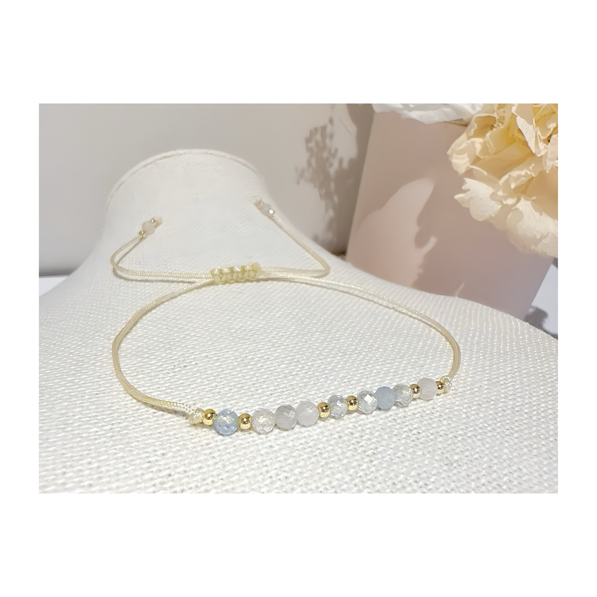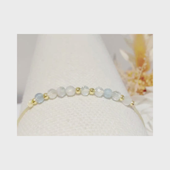 Celebrate March birthdays with this minimalist Aquamarine gemstone bracelet, handmade with genuine faceted round Aquamarine stones-the birthstone of our March babies.