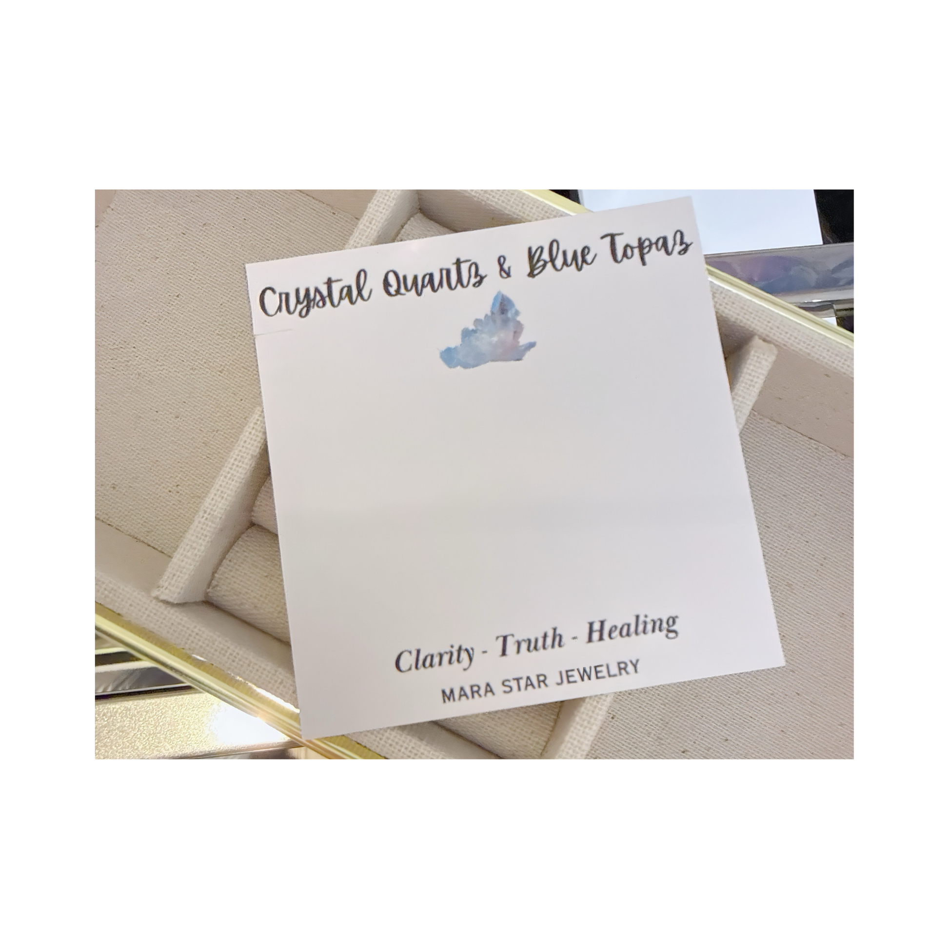 When crystal quartz & blue topaz are paired, they are known to work together to balance emotions, enhance communication, and amplify positive energy.