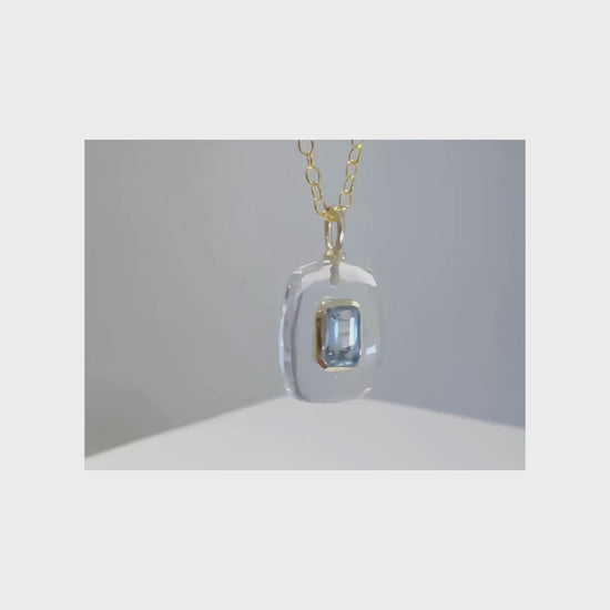 Crystal Quartz Blue Topaz Pendant Necklace: 18K Gold Vermeil Sterling Silver