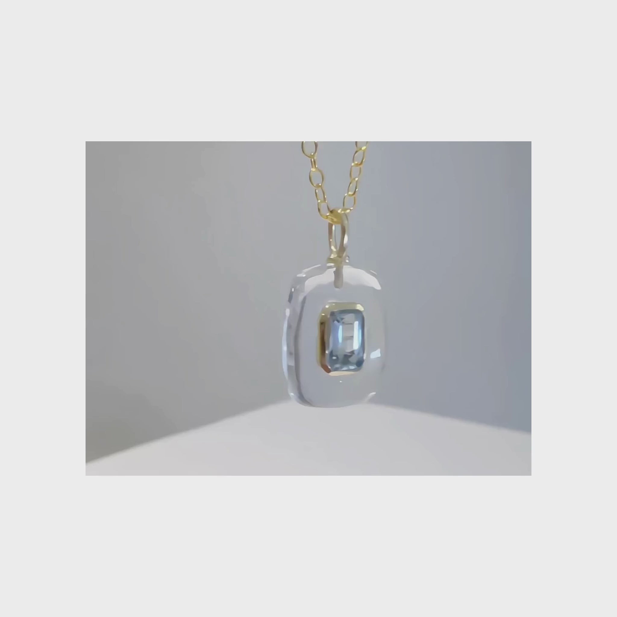 Gemstone Pendant: 100% genuine Crystal Quartz and Blue Topaz smooth rectangle measures approx. 15mm by 11mm and is Sterling Silver gold plated