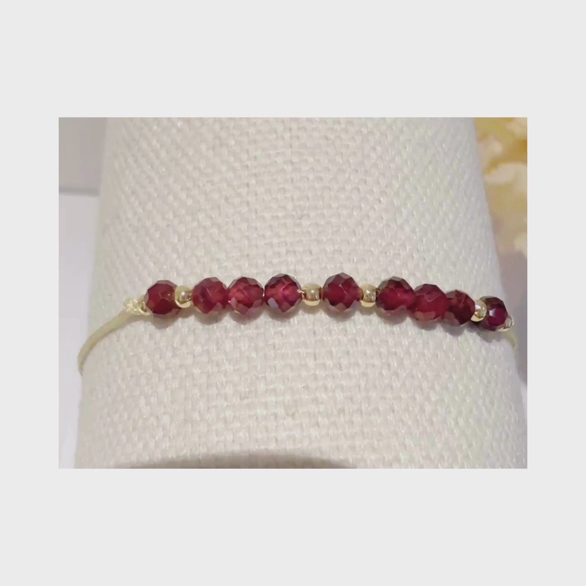 This dainty yet sturdy bracelet features 100% genuine round, faceted garnet gemstones. Celebrate January birthdays as garnet is the birthstone for January and a powerful Root Chakra stone.
