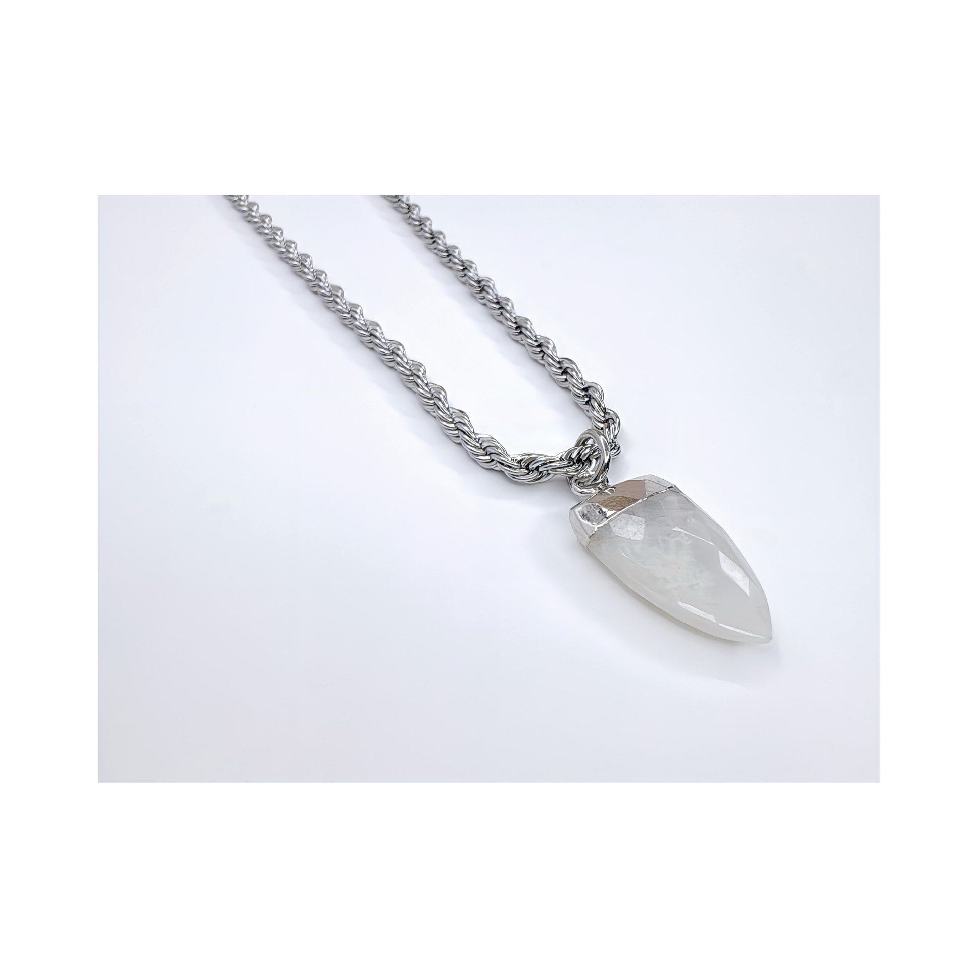 Carry the magic of the moon with you. This textured rope chain features a genuine rainbow moonstone gemstone - a symbol of new beginnings, inner strength, and protection. Moonstone is also one of the birthstones for June. Comes beautifully packaged with a moonstone meaning card. Perfect for gifting or for a personal keepsake.